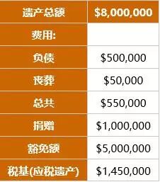 举例来说,2017年美国居民Andy在死亡时的遗产情况如下表: