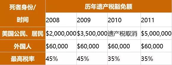 作为调节遗产,防止贫富差距悬殊的税种,遗产税主要是向非常富裕的人群征收的。近年来,联邦政府不断提高遗产税的豁免额度,同时持续降低遗产税的最高税率。以2011年为例,对于美国公民或居民,只有死者遗产总额超过500万美元,才有“资格”缴纳遗产税。
