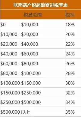美国联邦遗产税使用超额累进制,根据税基进行超额累进征税。2011年的遗产税率分成10个等级,从18 %到35%。遗产税缴纳额和遗产总额直接相关,遗产越多,税率越高,缴税越多。
