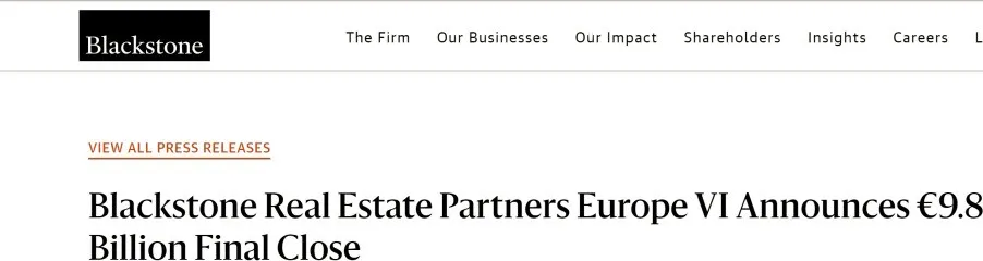 这是近两年以来成功完成募集的金额最大的一笔私募股权基金融资。截至现在,黑石集团宏伟的“欧洲资产投资行动”计划的资金已经高达300亿美元(约2100亿人民币),接下来便是轰轰烈烈的欧洲房地产抄底投资。